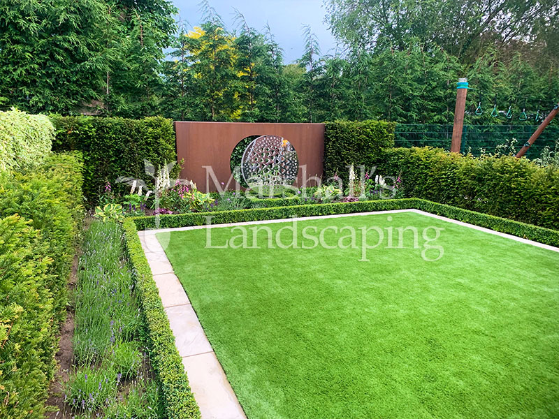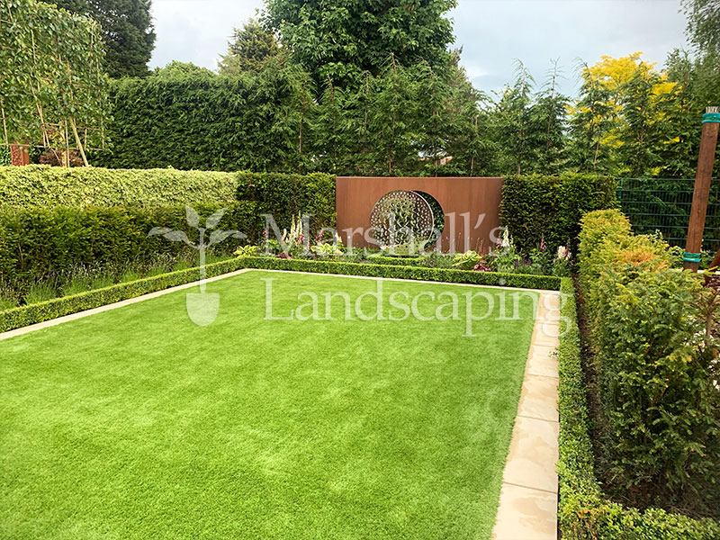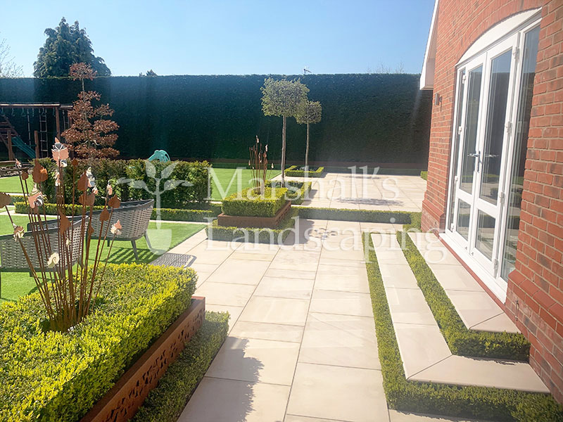 Corten steel accents and geometric lines add a stylish, architectural touch, giving the garden a smart, contemporary feel. Despite its refined look, the space has been designed with family life in mind – open, safe, and inviting, yet sophisticated enough for entertaining and relaxing outdoors. This project is a perfect example of how modern landscaping can create a functional, family-friendly garden that looks stunning year-round – right here in South Yorkshire.