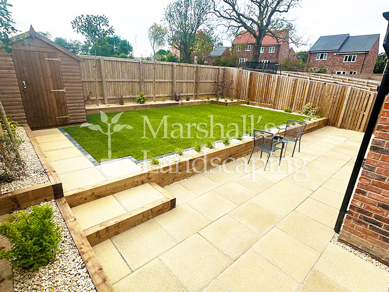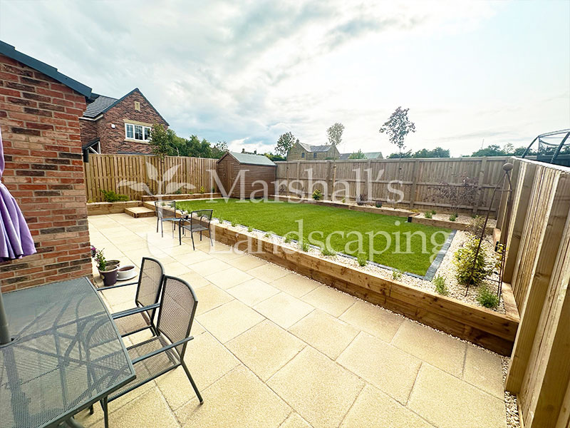 This impressive garden transformation in Harrogate has turned a challenging, sloped outdoor space into a stunning, multi-level garden that combines structure, usability, and modern style. Designed with both practicality and visual appeal in mind, the layout makes full use of the natural gradient while creating clearly defined areas for different uses.